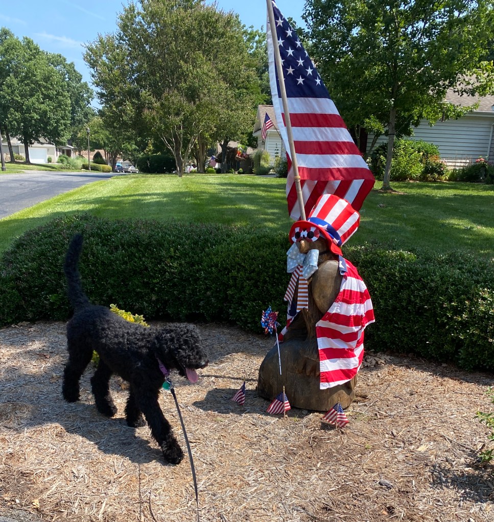 It was very hot so we took several short walks rather than a long walk. I watched Kiki wade in the water at the boat ramp and did not deign to wet my toes.