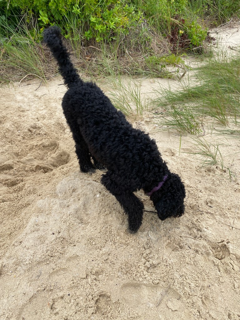 My surprise was a play date with Rikki at the beach. We had so much fun romping around and digging big holes in the sand!! Rikki likes to swim to get sticks out of the water but I only got my front toes wet as I tried the (yucky) water.