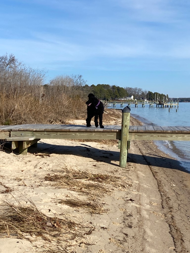 A long lunch time walk and play date with Rikki. What could be better? We saw lots of men in orange and camouflage today. I heard deer hounds in the distance but when Kiki explained their job I had no interest in joining them. This picture shows me as Aska, Queen of the Dock.