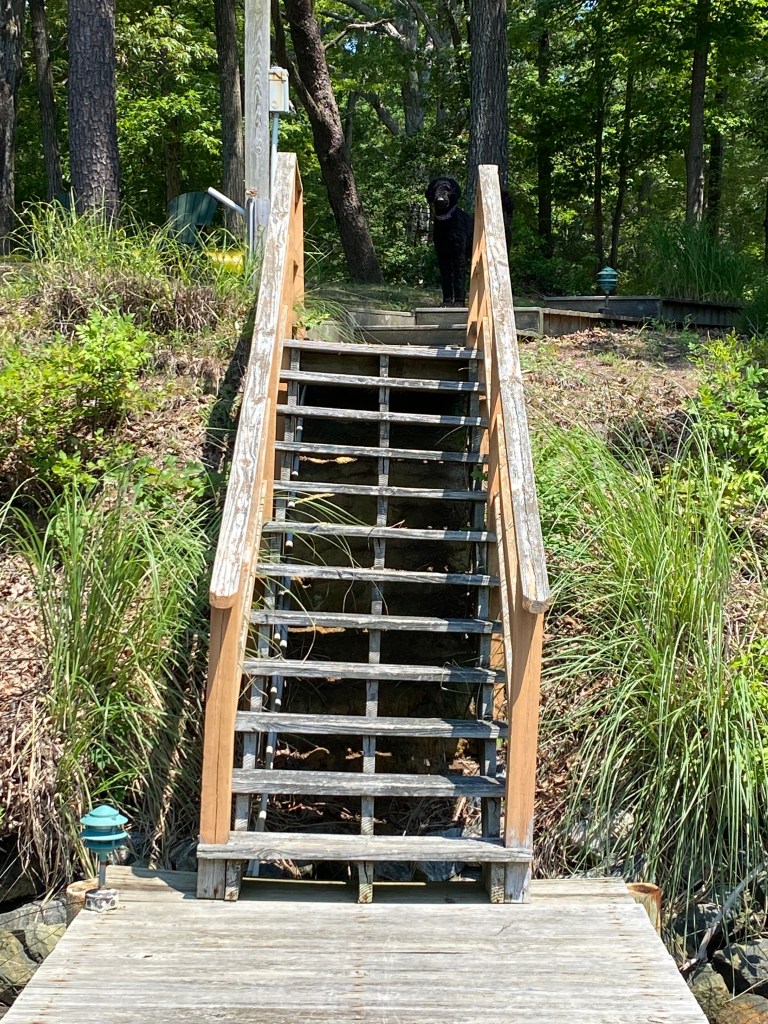 Camp is a little boring when Kiki has to work. But we get to do zoomies in the back yard and I get to avoid going down on the dock. And salmon skin found its way into my dinner bowl… .